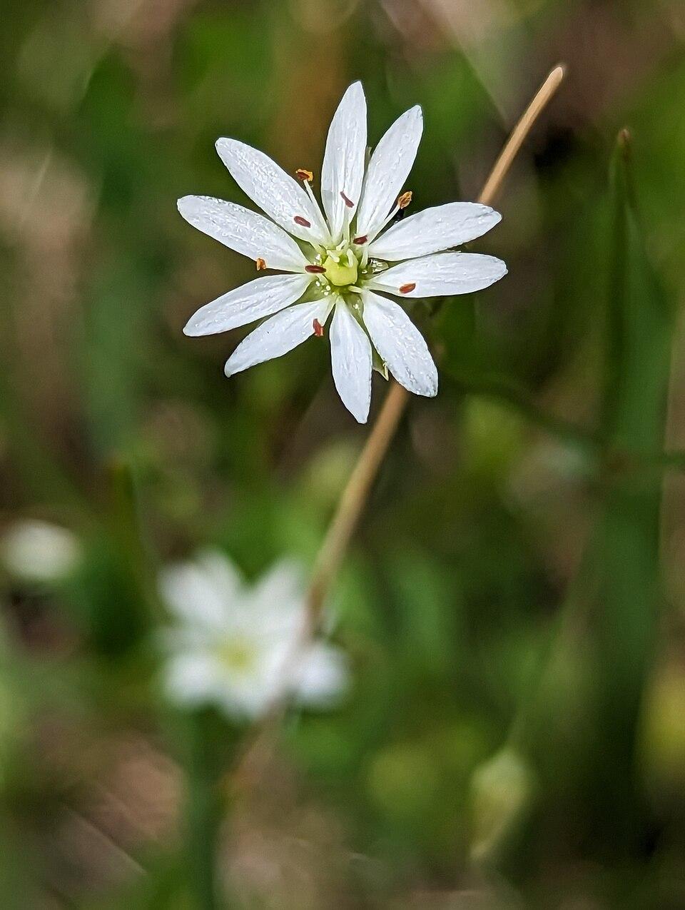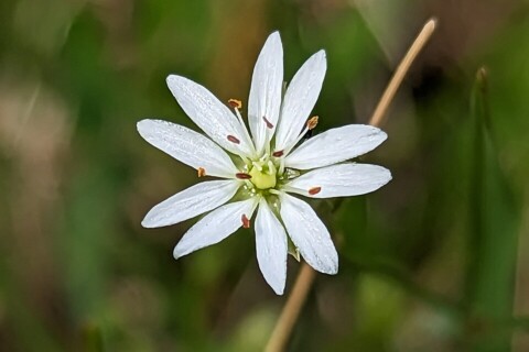 Die Gras-Sternmiere gehört zu den Nelkengewächsen und bevorzugt einen feuchten, sonnig- bis halbschattigen Standort. Die zarten, weißen Blüten - die aus fünf Kronblättern bestehen, die bis über die Mitte gespaltet sind - zeigen sich ab April und werden von Wildbienen besucht. Die rötlich-braunen Samen reifen in einer länglichen Kapselfrucht heran.