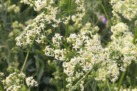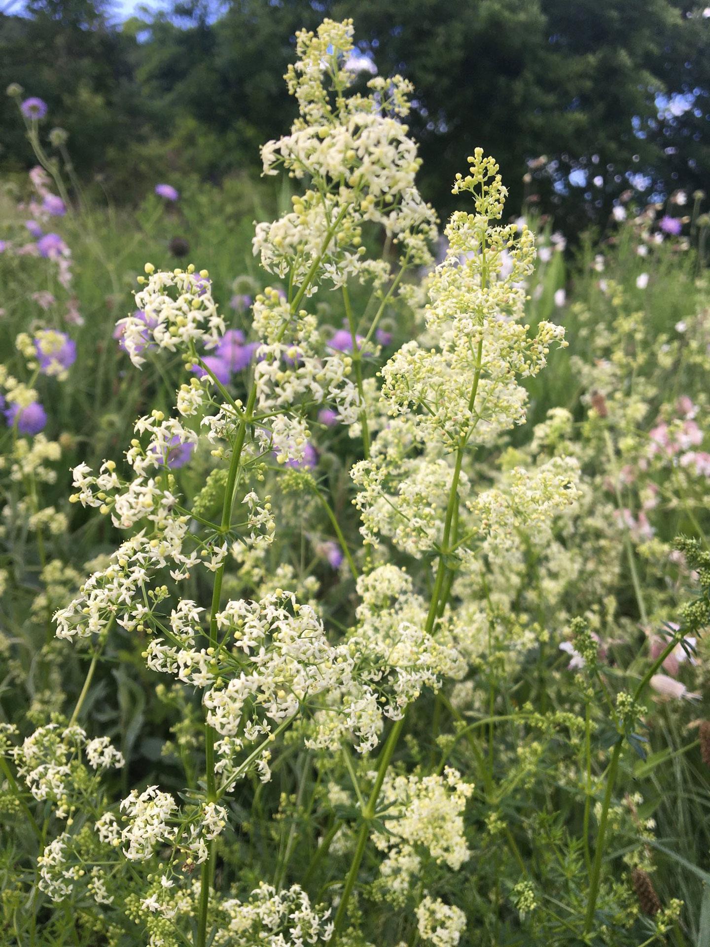 Das Weiße Labkraut wächst auf Wiesen und an Wegrändern, kommt aber auch auf Schutthalden vor. Die Pflanze mit den vierkantigen Stängeln und lanzettlichen Blättern ist vor allem bei Raupen als Futterpflanze beliebt. Die kleinen weißen, in Scheindolden zusammenstehenden Blüten betören durch ihren süßen Duft.
